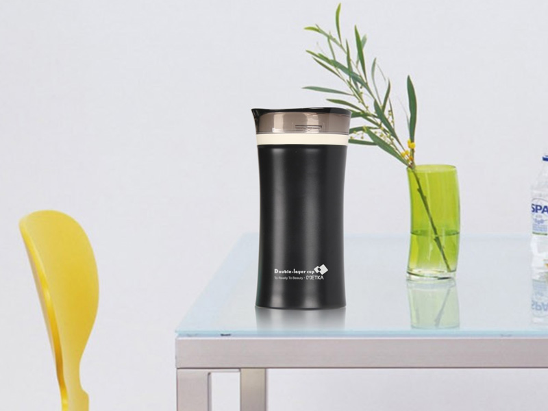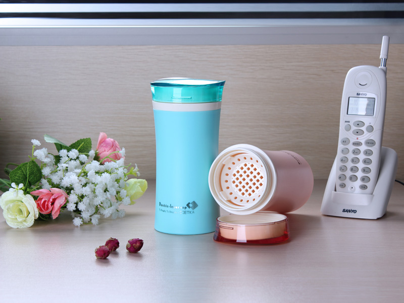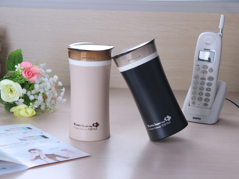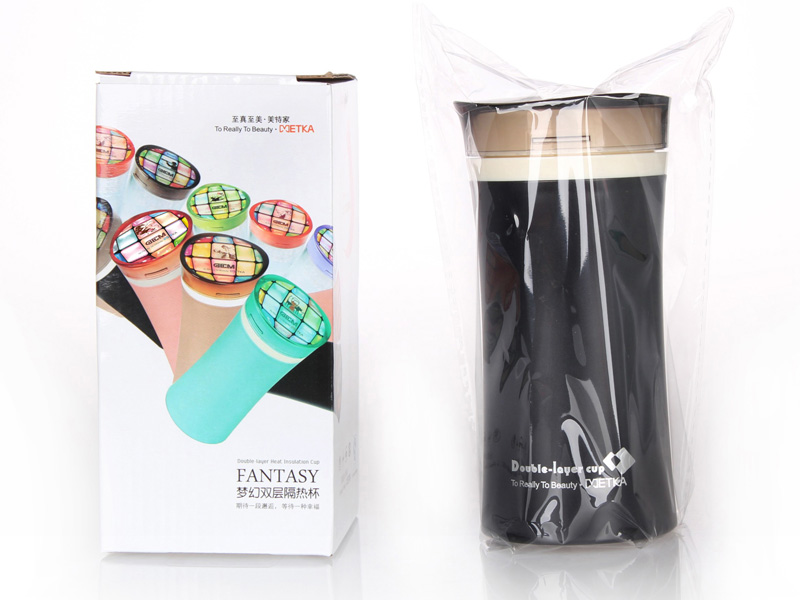 型号:6111 材质:内胆PP 外杯上盖AS 尺寸:直径7.6x高15.3cm 品名:梦幻双层隔热杯 颜色:(藕粉/卡其/蓝/黑)色 容量:320ml