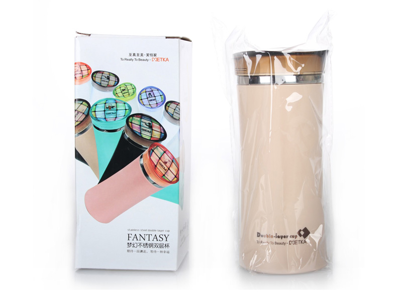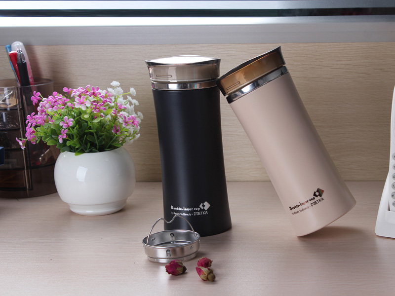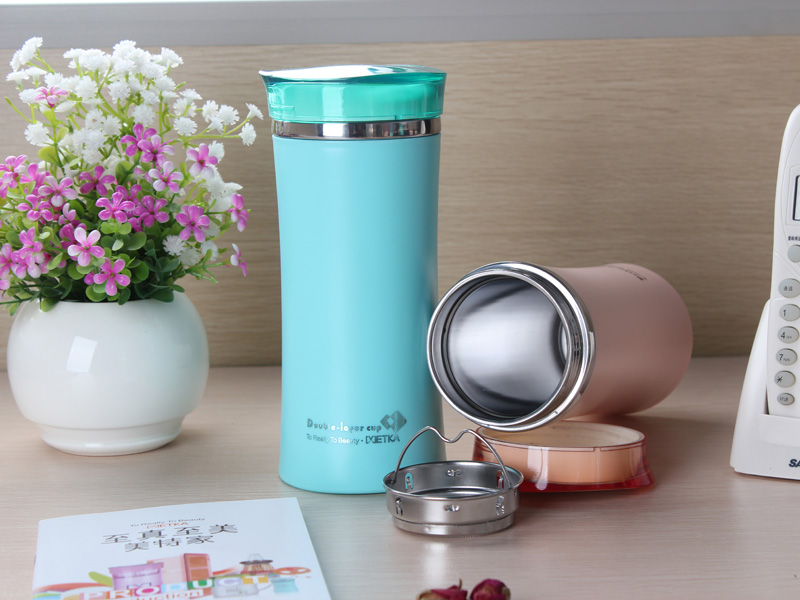 型号:6116 材质:内胆 茶漏不锈钢304# 外杯上盖AS 尺寸:直径8x高18cm 颜色:(藕粉/卡其/蓝/黑)色 容量:420ml